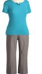 I had to cut the bottom of the shirt off to make it work. The shirt actually has kind of a rounded bottom and not so bluntly cut. And the sleeves have cuffs.